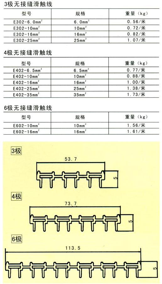 柔性一體式滑觸線是以無氧銅(導電率達99.99%)輸送電源、銅導體之厚度厚(一般標準厚為2.8m/m×10W)、壓降小、導電率倍佳;可根據(jù)用戶的車間長度或用戶的需求來配一條以之相同長度的安全電軌,使整個車間安全配電中間沒有任何接口,真正解決了國產(chǎn)滑觸線因接口多經(jīng)??ㄗ〖娝⒍斐啥搪坊虿荒苓\行的問題。并且適用于曲線、弧形及高低行走的設計,并且安裝簡便。從而使整套天車工程美觀、整潔又安全。產(chǎn)品有3P、