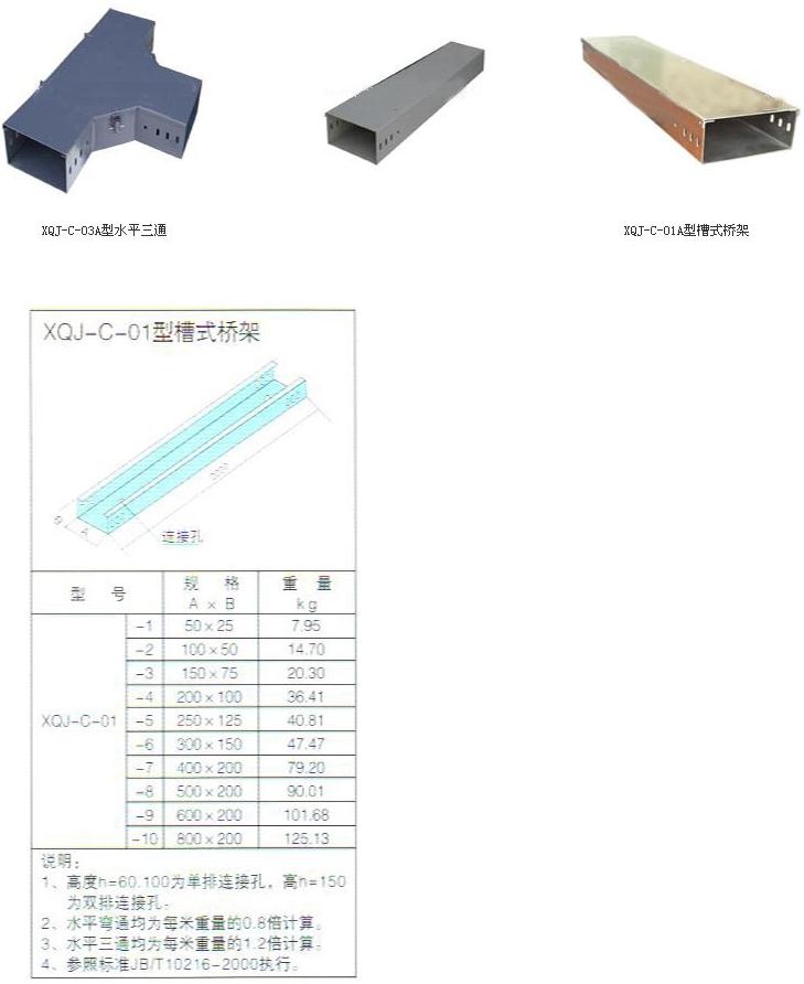 金屬電纜橋架托盤式電纜橋架具有重量輕、載荷大、造型美觀、結(jié)構(gòu)簡單、安裝方便等優(yōu)點。托盤式橋架是石油、化工、電力、輕工、電視、電訊等方面應用最廣泛的一種。它既適用于動力電纜的安裝,也適用于控制電纜的敷設(shè)。托盤式橋架在不同跨距下最大允許均布載荷及變形量不同:托盤式橋架其表面處理分為靜電噴塑、鍍鋅熱鍍鋅、噴仿瓷、鍍鋅鈍化幾種,在重腐蝕環(huán)境中可特殊防腐處理。托盤式橋架血有護罩,其所有配件與梯級式、槽式橋架通用。