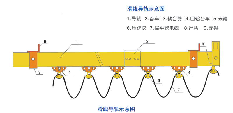 HXDL系列移動電纜滑線有軌道、電纜小車、電纜以及懸吊、固定等組件組合而成。該產(chǎn)品以其簡潔的結(jié)構(gòu)、完備的性能被廣泛地應(yīng)用于鐵路貨場、港口碼頭等起重運輸機(jī)械的移動供電和信號傳輸系統(tǒng)中。