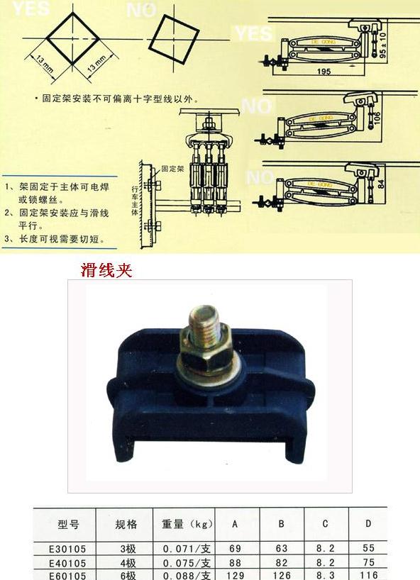 柔性一體式滑觸線是以無氧銅(導電率達99.99%)輸送電源、銅導體之厚度厚(一般標準厚為2.8m/m×10W)、壓降小、導電率倍佳;可根據(jù)用戶的車間長度或用戶的需求來配一條以之相同長度的安全電軌,使整個車間安全配電中間沒有任何接口,真正解決了國產(chǎn)滑觸線因接口多經(jīng)??ㄗ〖娝⒍斐啥搪坊虿荒苓\行的問題。并且適用于曲線、弧形及高低行走的設計,并且安裝簡便。從而使整套天車工程美觀、整潔又安全。產(chǎn)品有3P、